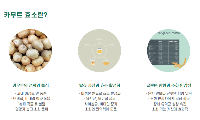 카무트 효소는 소화, 장 건강, 체중, 혈당, 면역력 등 다방면에서 도움이 되는 건강식품입니다.