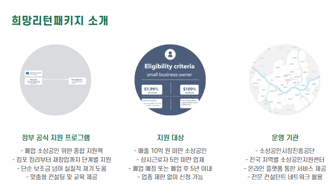 희망리턴패키지는 폐업한 소상공인을 위한 정부 공식 지원 프로그램입니다.