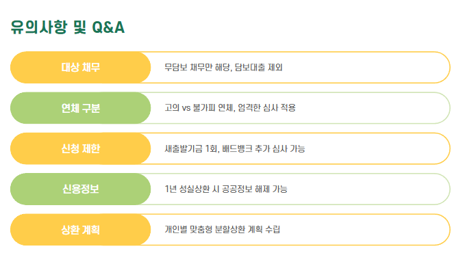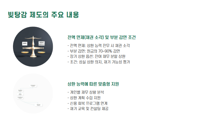 - 원금의 70~90% 감면 + 장기 분할상환을 지원하는 제도입니다.