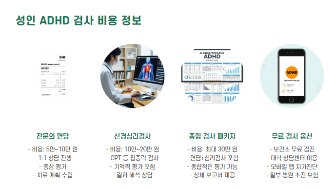 | 신경심리검사 | CPT 등 집중·기억력 검사 | 10만~20만 원 |