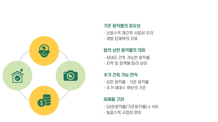 | 법적 상한 용적률 | 높을수록 추가 세대수 확보 가능 |