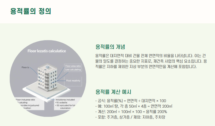- 정의: 지하 제외, 전체 건물의 연면적을 대지면적으로 나눈 비율