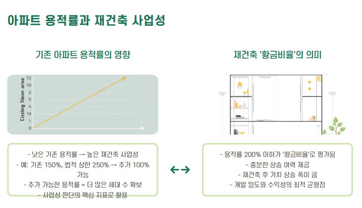 - 기존 아파트의 용적률이 낮을수록 재건축 사업성이 높음