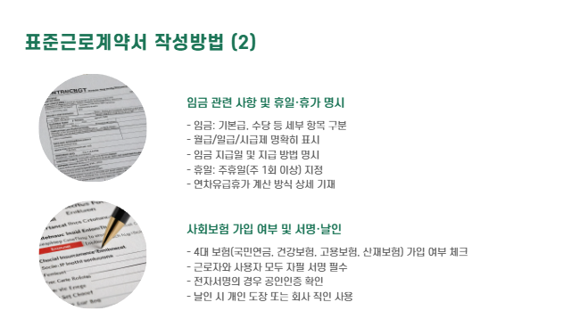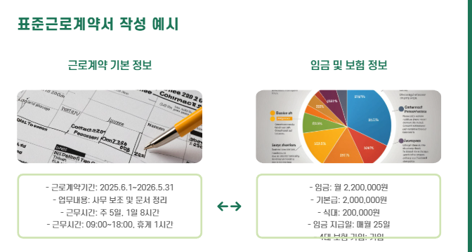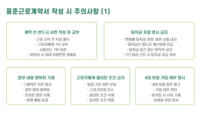 특히 고용노동부가 권장하는 표준근로계약서는 법적 분쟁 시 강력한 증빙 자료가 되며, 근로기준법상 서면 교부가 의무로 되어 있습니다.