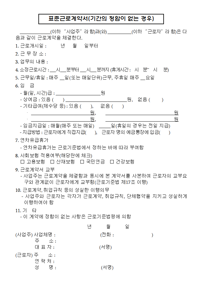 고용노동부 홈페이지에서 무료로 양식을 다운로드 받으실 수 있습니다.