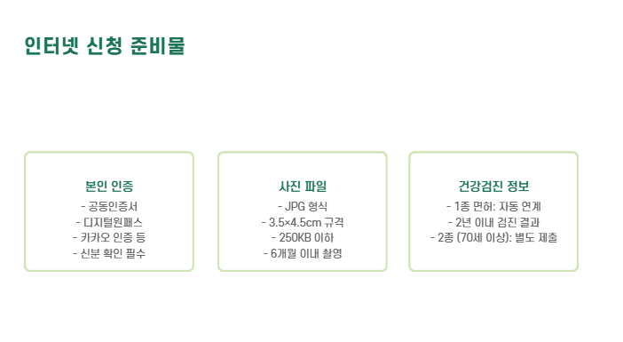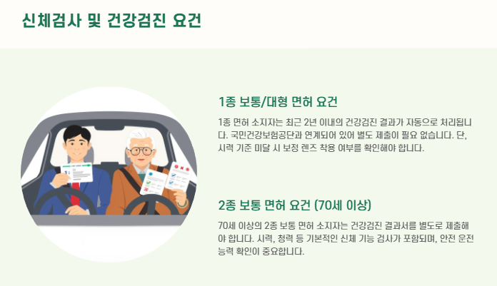 | 건강검진 | 1종 면허는 건강보험공단 연계 자동 조회 |