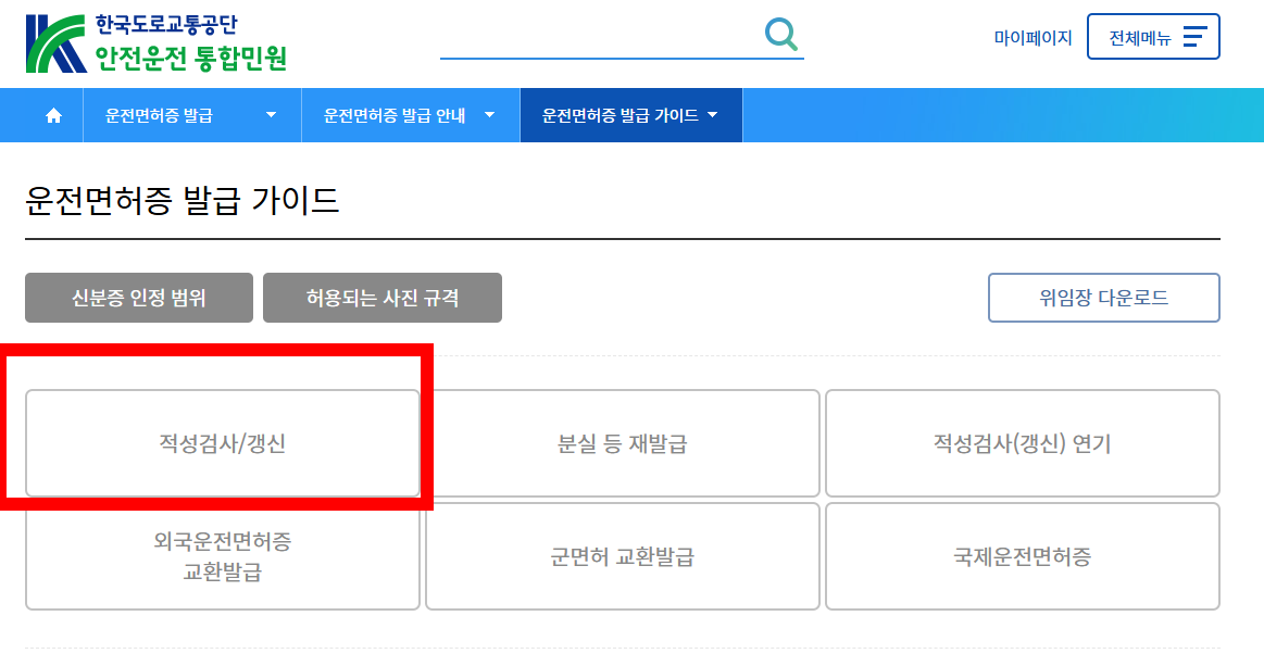 2. 로그인 및 '운전면허증 갱신' 선택