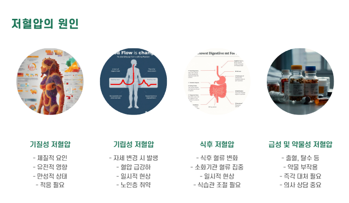 | 약물성 저혈압 | 항고혈압제, 이뇨제, 항우울제 등 부작용 |