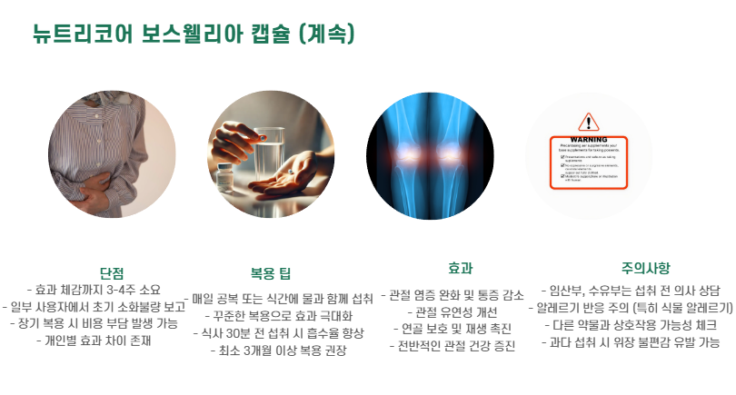 - 주요 성분: 보스웰리아 + 비타민D + 아연