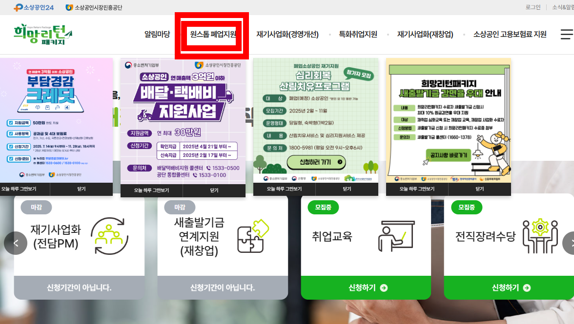 소상공인 폐업지원금 신청은 '희망리턴 패키지' 공식 홈페이지에서 신청할 수 있습니다.