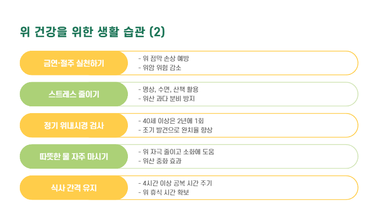 - 정기 위내시경 검사받기: 40세 이상은 2년에 1회