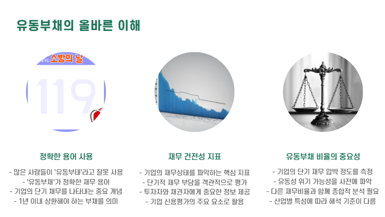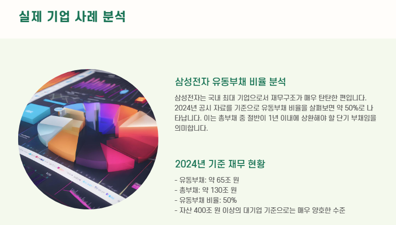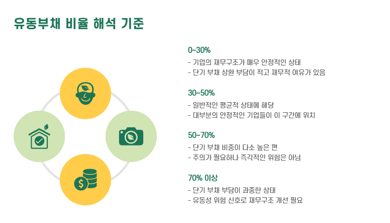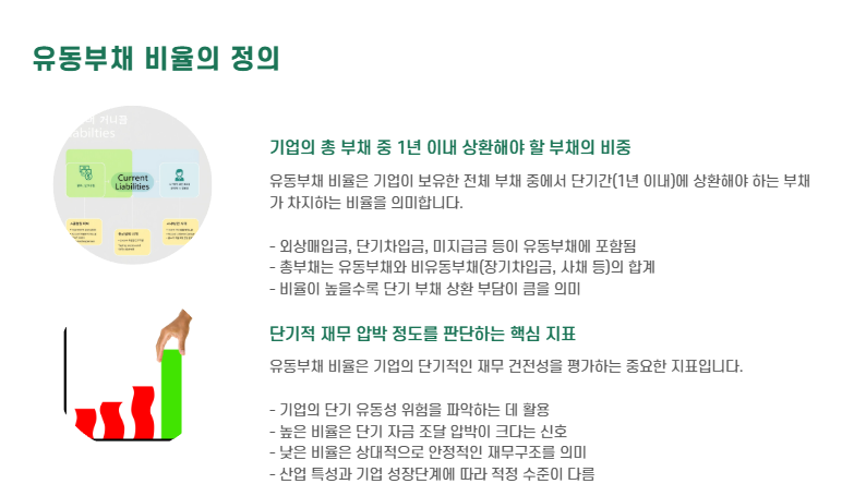 ➡ 유동부채 비율은 위 지표들과 함께 분석해야 정확한 판단이 가능합니다.