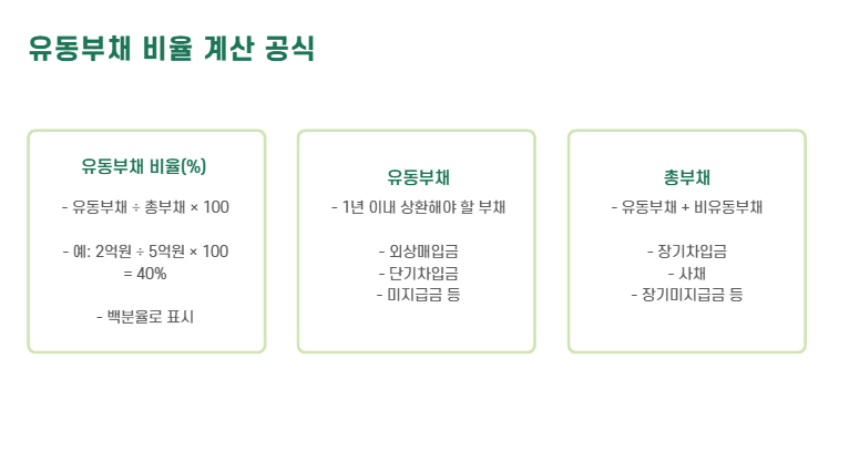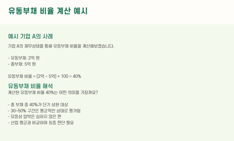 유동부채 비율 = (2억 ÷ 5억) × 100 = 40%
