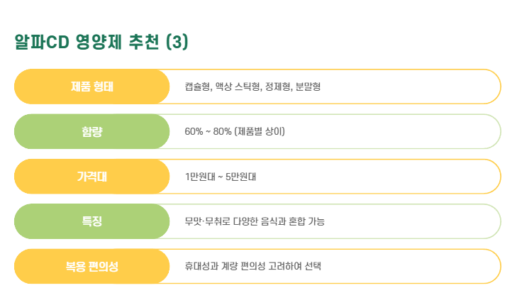 이번글에서는 알파CD란 무엇인지, 주요 효능, 복용법, 가격대별 제품 비교까지 자세히 알려 드리겠습니다.
