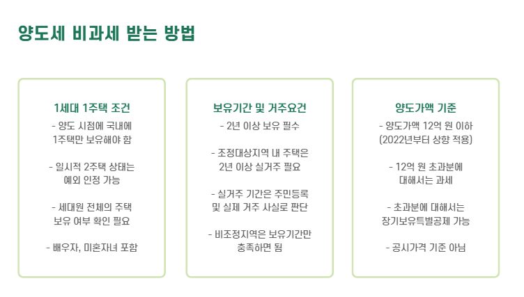 아래 조건을 모두 충족하면 양도세 비과세 대상이 됩니다.