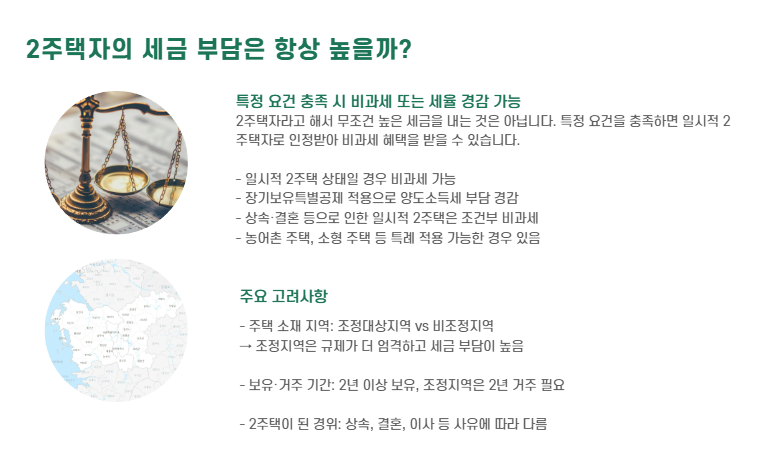 핵심은 "해당 주택이 어떤 지역인지", "보유·거주 기간", "2주택이 된 경위"입니다.