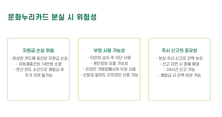 문화누리카드를 분실 하셨을 경우 즉시 신고하시기 바랍니다.