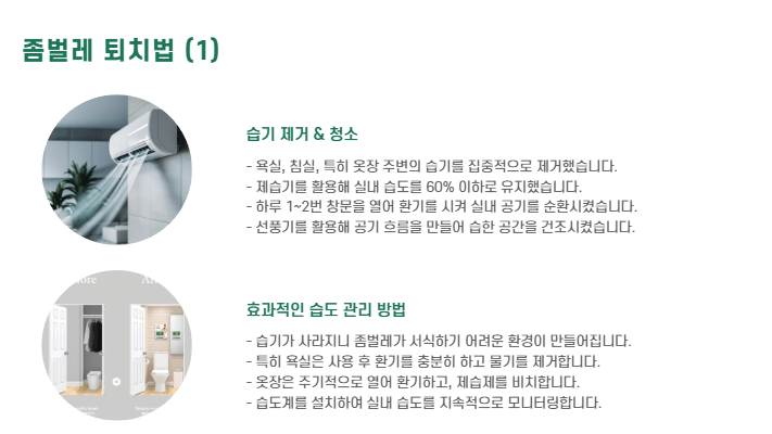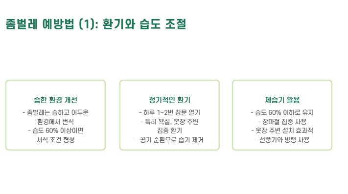 | 습기 제거 | 좀벌레 번식 차단 | 제습기, 환기 필수 |