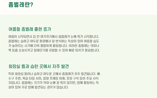 - 좀벌레를 한 마리라도 보면 즉시 대응해야 합니다.