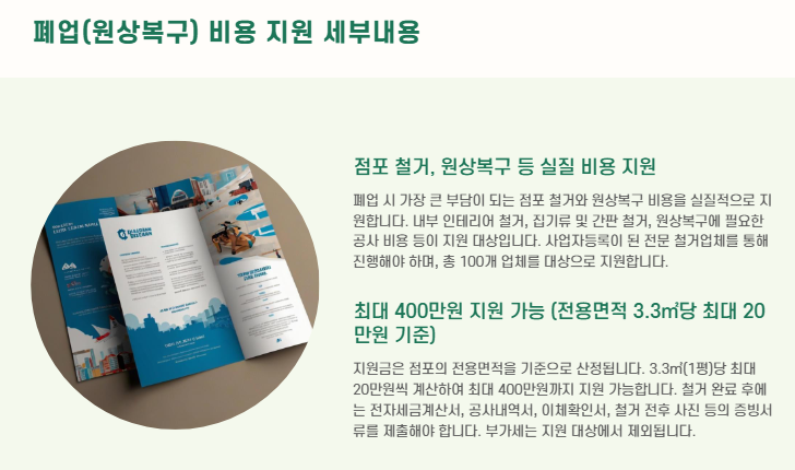 - 점포 철거, 원상복구 등 실질 비용 지원