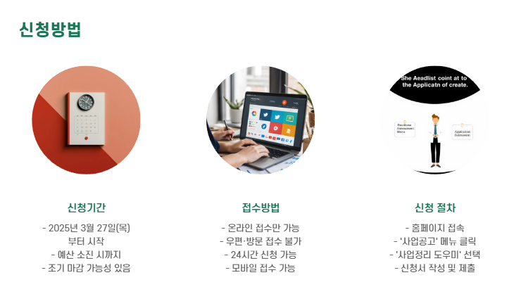 - 신청기간: 2025년 3월 27일(목)부터 예산 소진 시까지