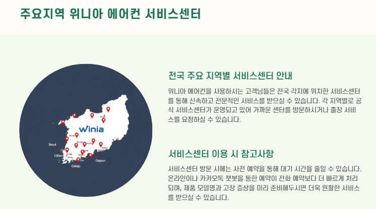 주요지역 위니아 에어컨 서비스센터