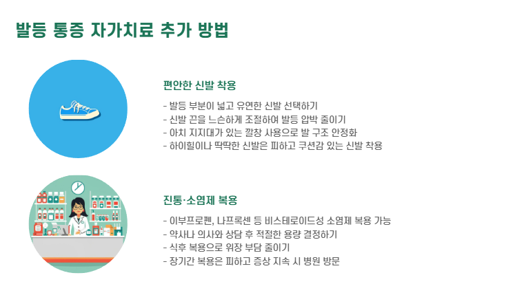 - 발등 압박 줄이는 편한 신발 착용