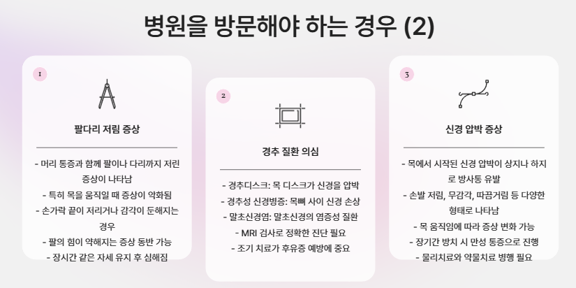 ✅ 머리 외에 팔이나 다리까지 저린 증상 동반 시