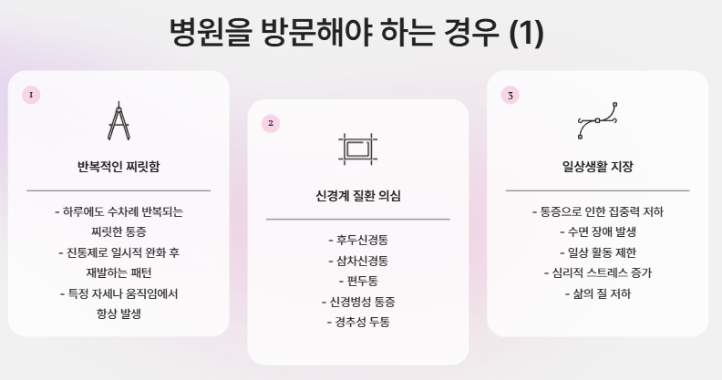 ✅ 통증이 점점 심해지고 진통제로도 안 가라앉는 경우