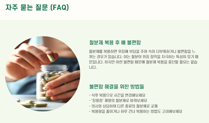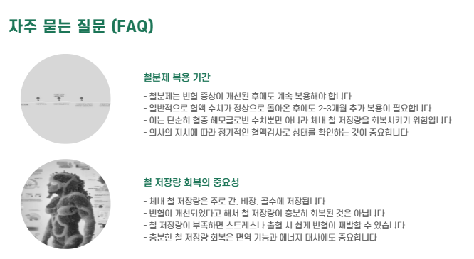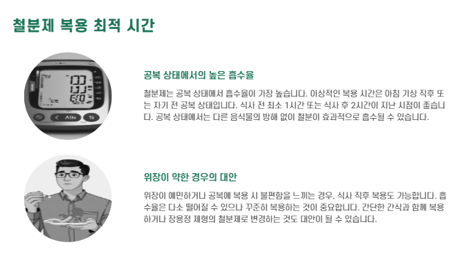 👉 보통 빈혈 교정 후에도 2~3개월 추가 복용이 필요해요. 철 저장량까지 회복하려면 시간이 더 걸립니다.