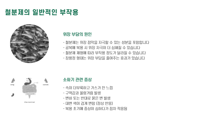 철분제는 효과도 좋지만, 위에 부담을 줄 수 있는 영양소입니다.