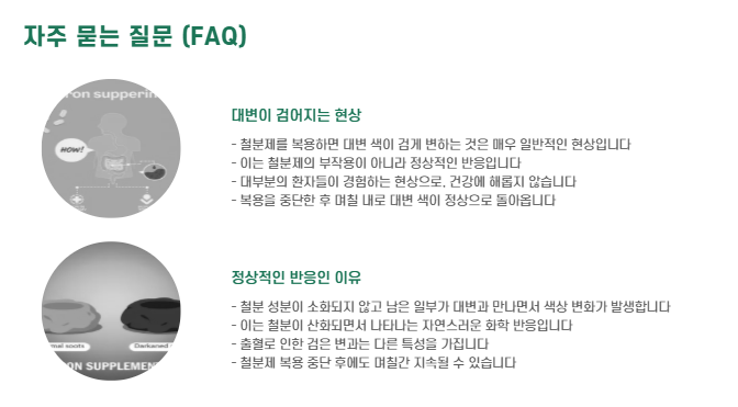 - 대변 색이 검게 변함 → 대부분 정상 반응입니다