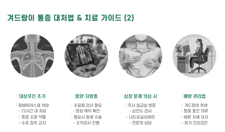 - 대처: 피부과 진료, 3일 내 항바이러스제 복용, 진통제 병행