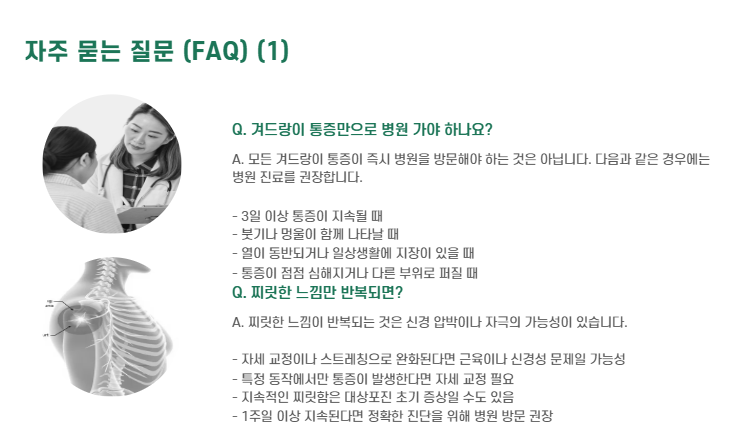 - 1주 이상 통증이 지속되거나 점점 심해질 때