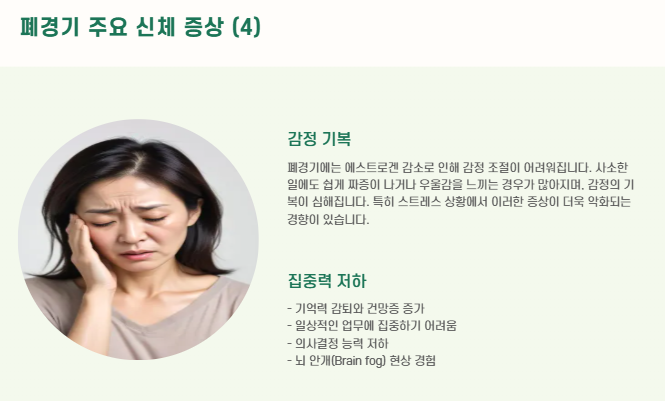 “생리가 점점 불규칙해졌는데... 혹시 나도 폐경 전조증상?” 폐경은 단순히 생리가 멈추는 것만을 의미하지 않습니다.