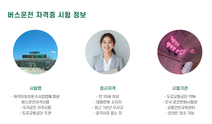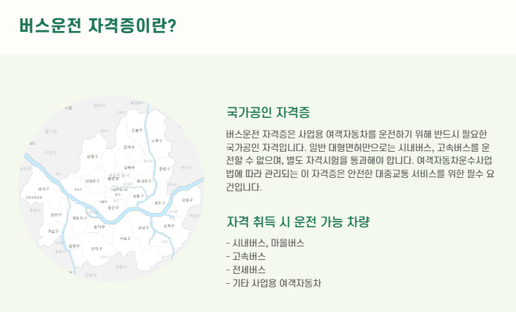 버스운전 자격증은 사업용 여객자동차를 운전하기 위해 반드시 필요한 국가공인 자격입니다.