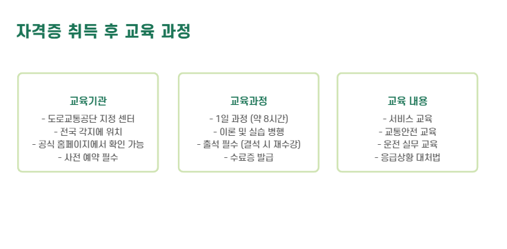 합격 후에는 반드시 버스운전자격교육을 이수해야 실제 운전이 가능합니다.