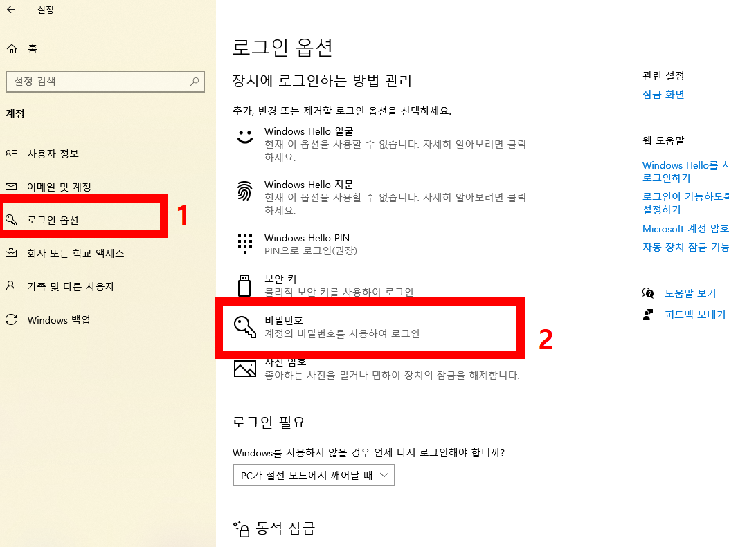 - [설정] - [로그인 옵션] - [비밀번호] 클릭