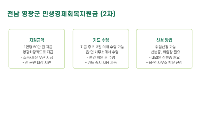 - 1인당 50만 원 (영광사랑카드로 지급)