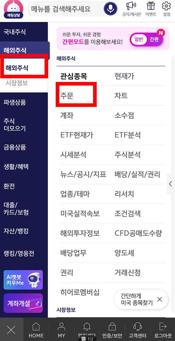 ✅ 해외주식-> 주문 누른 후,