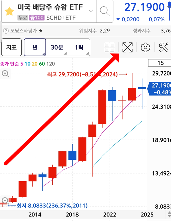| SCHD | 배당 성장주 중심 | 우량기업 중심, 안정성↑ | 성장률은 다소 낮음 |