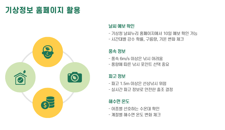 낚시여행을 계획할 때 가장 중요한 것은 바로 날씨 정보입니다. 아무리 장비가 완벽하고 조황이 좋아도, 바람이 강하거나 파도가 높으면 제대로 낚시를 즐기기 어렵습니다.