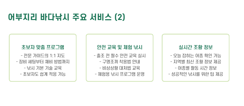 “어부지리 바다낚시”는 초보자도 쉽게 즐길 수 있도록 가이드 동행, 장비 대여, 안전 교육을 제공해 큰 인기를 얻고 있습니다.