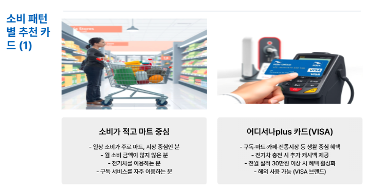 → 어디서나plus 카드(VISA): 구독·마트·카페·전통시장 등 생활 중심 혜택