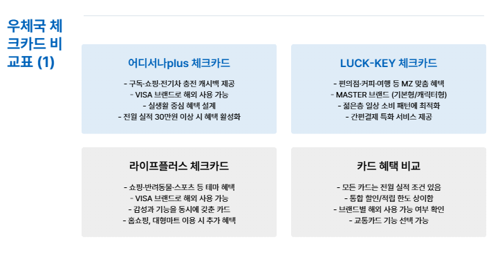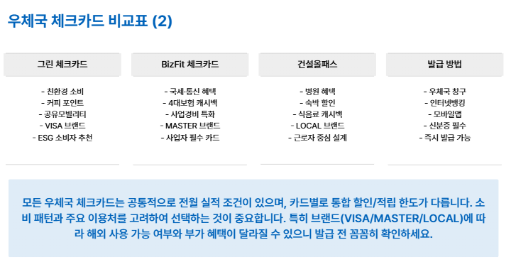 ✅ 우체국 체크카드 비교표 (대표 카드 정리)