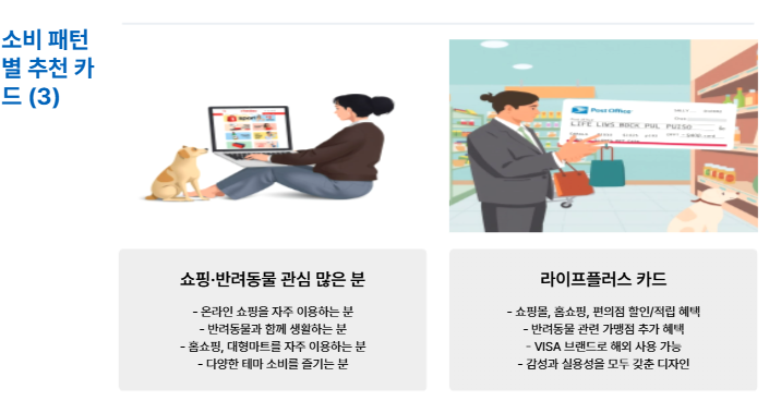 | 라이프플러스 체크카드 | 쇼핑·반려동물·스포츠 등 | VISA | 감성+기능 카드 |