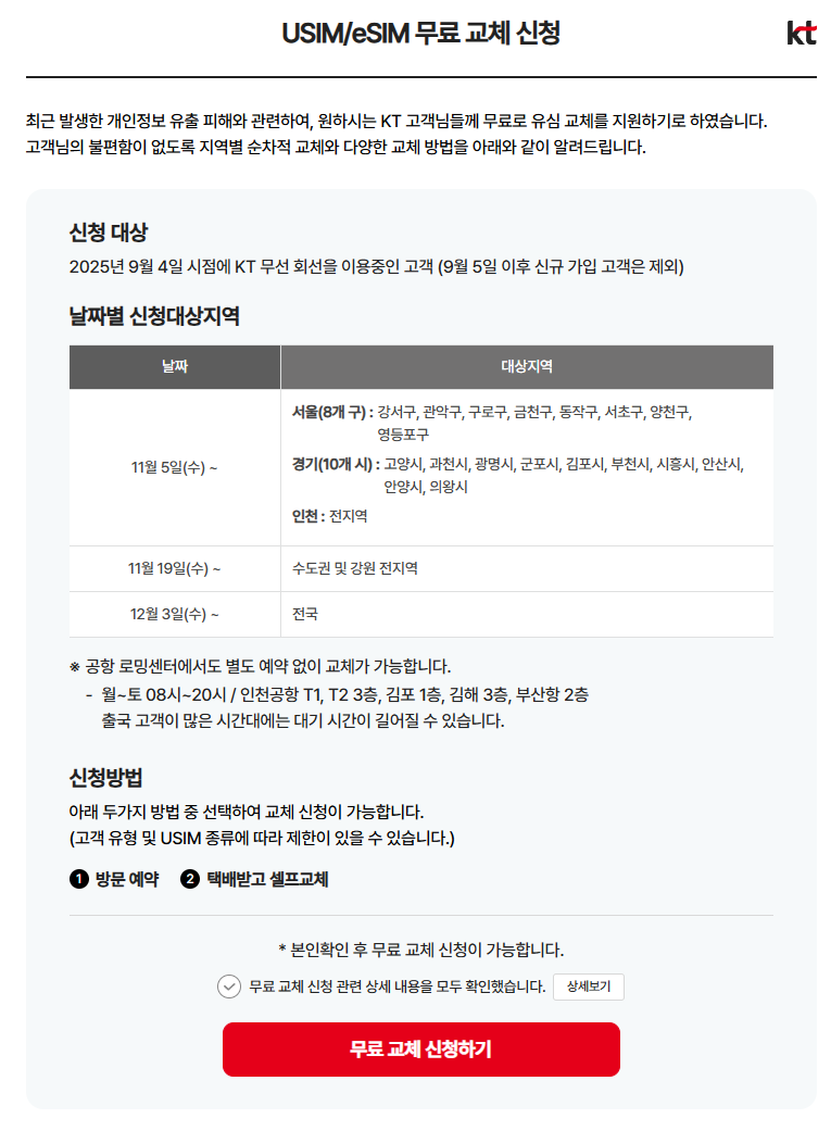 kt 유심 무상교체 신청 방법