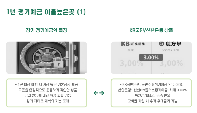 | 1년 | KB국민은행 | 국민수퍼정기예금(1년 이상) | 약 2.05 % |