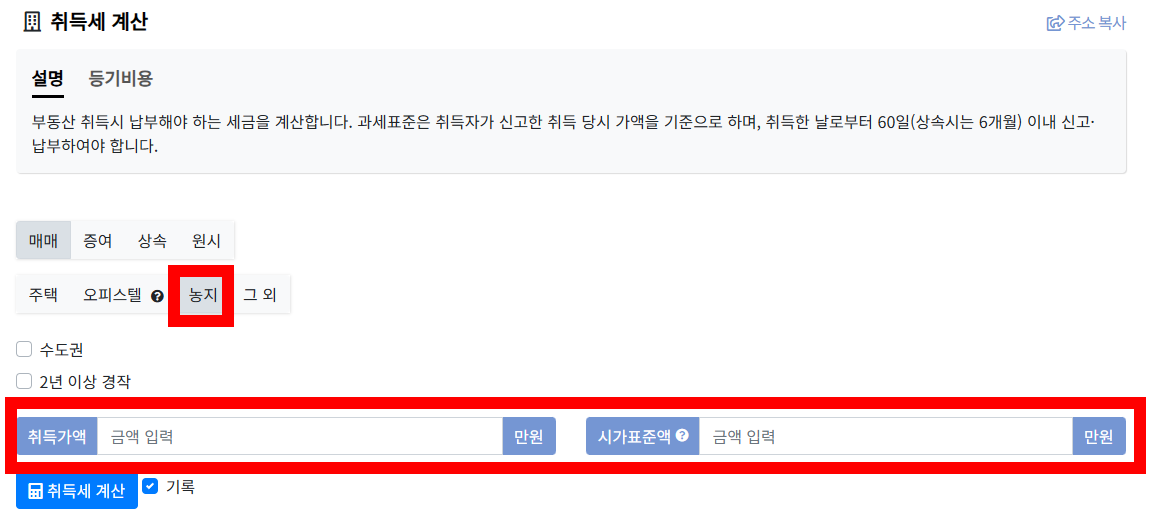 자동 계산기를 이용하시면 쉽고 간편하게 농지 취득세를 계산하실 수 있습니다.