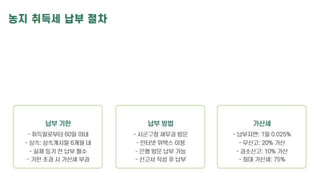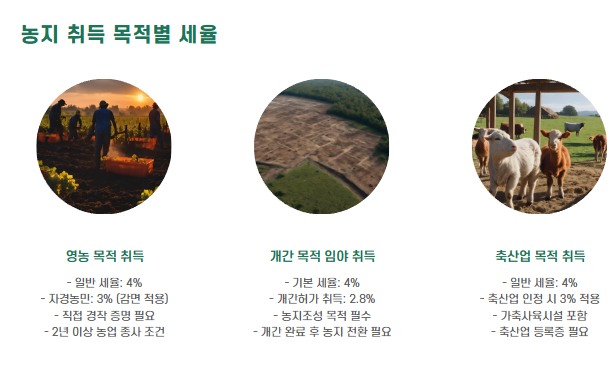 | 일반 취득 | 4% | 비영농 목적, 법인 또는 투자용 농지 취득 시 |
